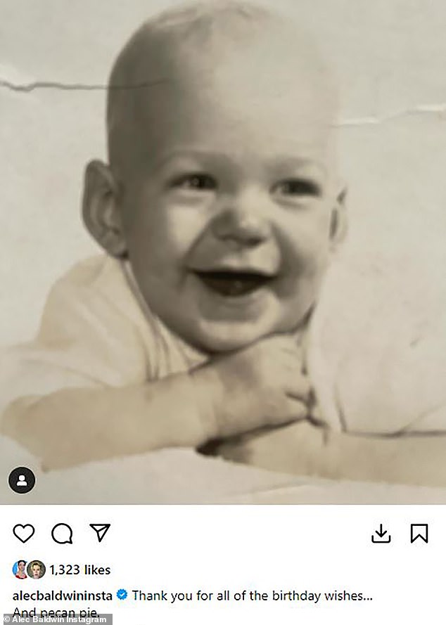 Alec Baldwin Marks 66th Birthday with Throwback Baby Photo and Pecan Pie from Wife, Amidst Rust Manslaughter Case Concerns
