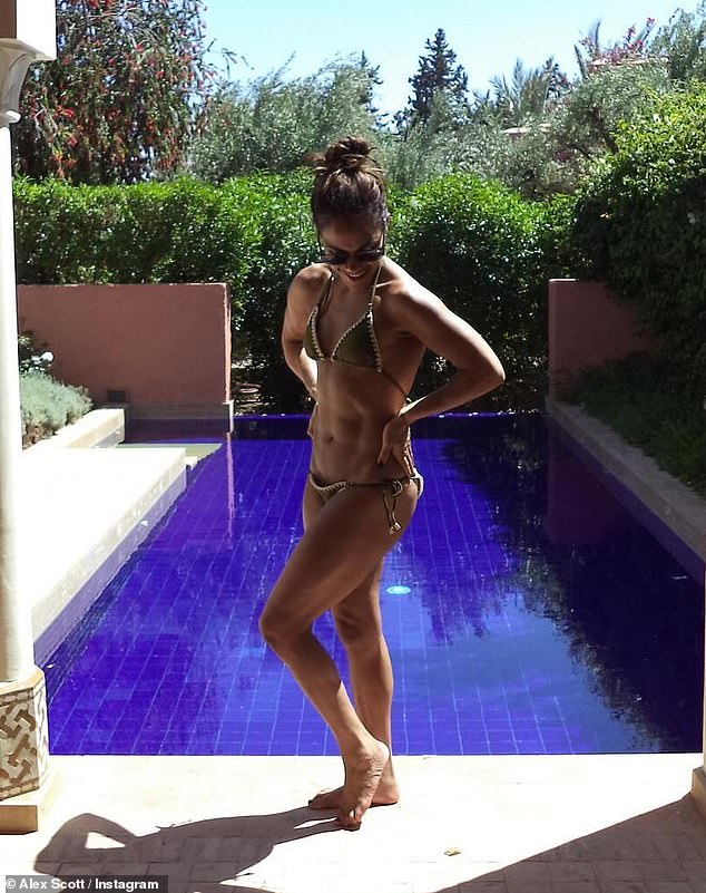 Alex Scott, a 39-year-old presenter, shared a series of sizzling Instagram snaps on a luxurious holiday, showcasing her incredible figure in a skimpy khaki bikini. In one photo, she posed by a swimming pool in the two-piece bathing suit, while another picture featured her cuddling up with partner and singer Jess Glynne, 34, who coordinated in black outfits. In a third photo, Alex flaunted her figure in a red and white striped bikini in a mirror selfie. She also posted a photo of herself in a stylish outfit, wearing an oversized long grey shirt over white crop top and wide-legged jeans.