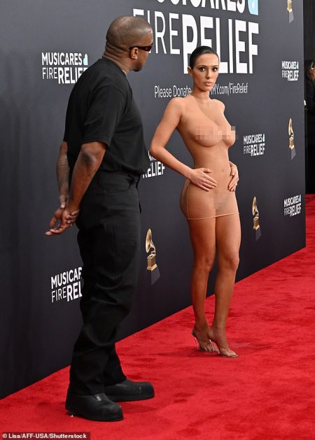 Summarize this content to 2000 words in 6 paragraphs Kanye West furiously slammed for Bianca Censori’s nude Grammy Awards stunt…