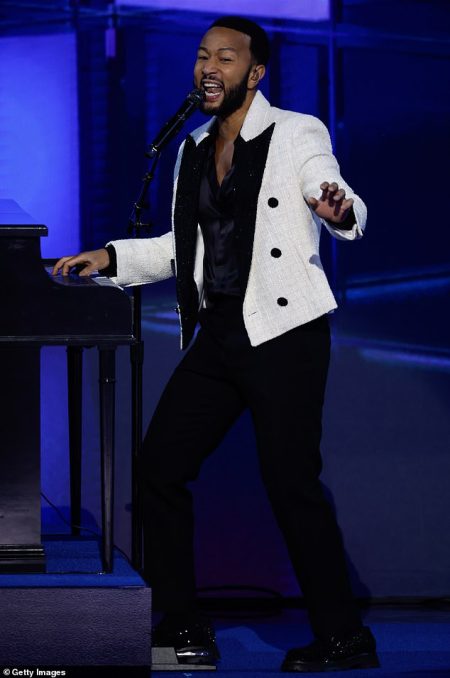 John Legend performed Prince’s hit Let’s Go Crazy with Shelia E. during the third night of the 2024 Democratic National…