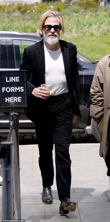 Chris Pine was seen in New York City looking stylish in a black corduroy suit paired with a white crew…