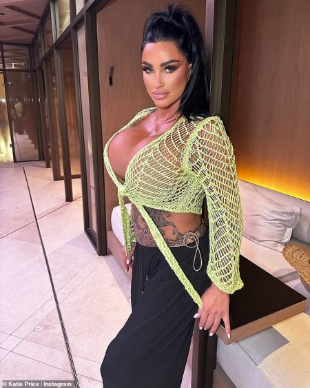 Katie Price, a former glamour model, recently flaunted her surgically enhanced assets in a skimpy net top, showcasing the results…