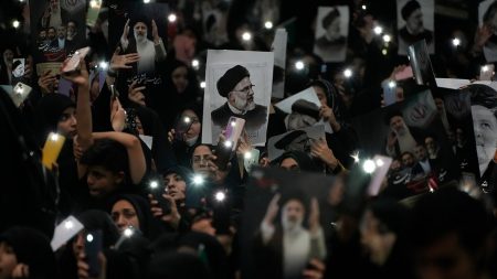Mourners chanted “Death to America” at the funeral service for Iranian President Ebrahim Raisi in Tehran following a helicopter crash…