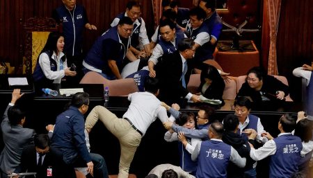Taiwan’s parliament was plunged into chaos as lawmakers engaged in a brawl over proposed reforms, with video footage showing punches…