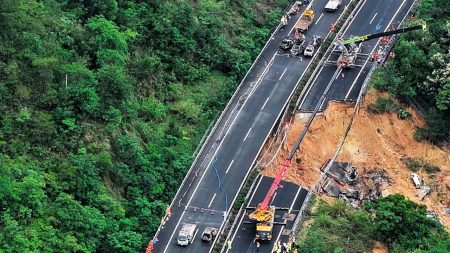 A section of a highway collapsed in Meizhou, China, after heavy rains, leading to the death of at least 36…