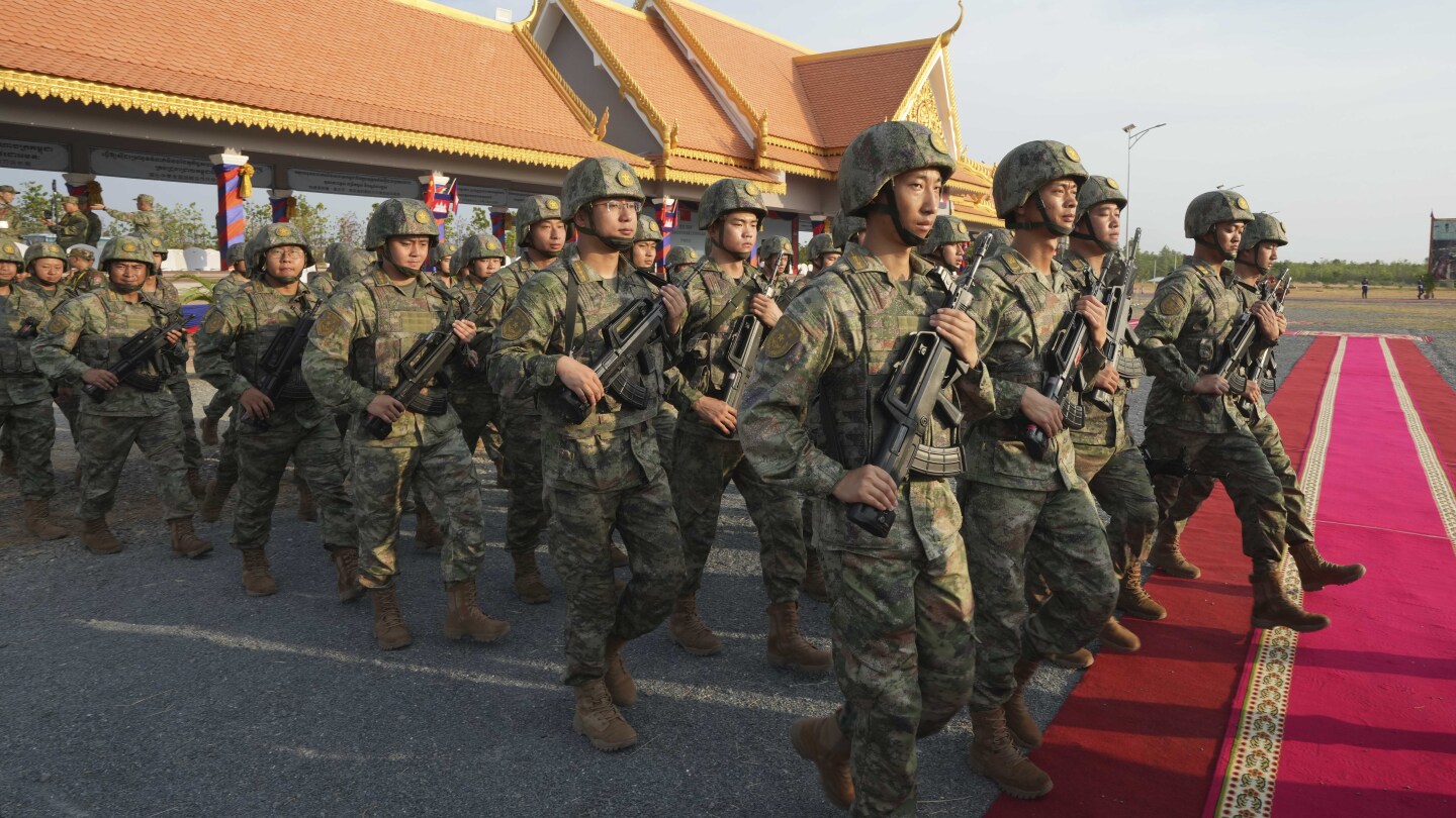 In Svay Chok, Cambodia, military exercises between Cambodia and China began on Thursday, raising concerns about Beijing’s increasing influence in the Southeast Asian nation. The “Golden Dragon” ground and sea maneuvers involve 1,315 Cambodian military personnel and 760 Chinese participants, including multiple ships from both countries. The exercises take place at a Cambodian military base located about 90 kilometers northwest of Phnom Penh, where upgrades have been made with the help of China. The involvement of China in enhancing military facilities, such as the Ream Naval Base, has raised alarms among the United States and others who fear it could lead to the establishment of a Chinese navy outpost in a strategically important location on the Gulf of Thailand.