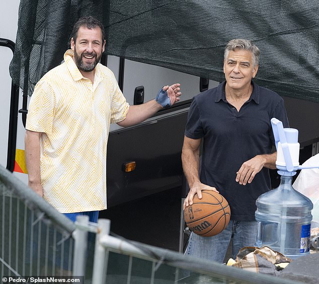 George Clooney recently celebrated his 63rd birthday by playing basketball with his co-star Adam Sandler in Italy while on the set of their new Netflix movie. The two actors originally met in 1995 while hosting NBC’s Saturday Night Live and have maintained a friendship over the years. Sandler, who was an SNL cast member from 1990-1995, gained a slight advantage in their game by wearing a blue dribbling glove on his left hand, while Clooney sported his style in a black polo shirt and baggy blue jeans.