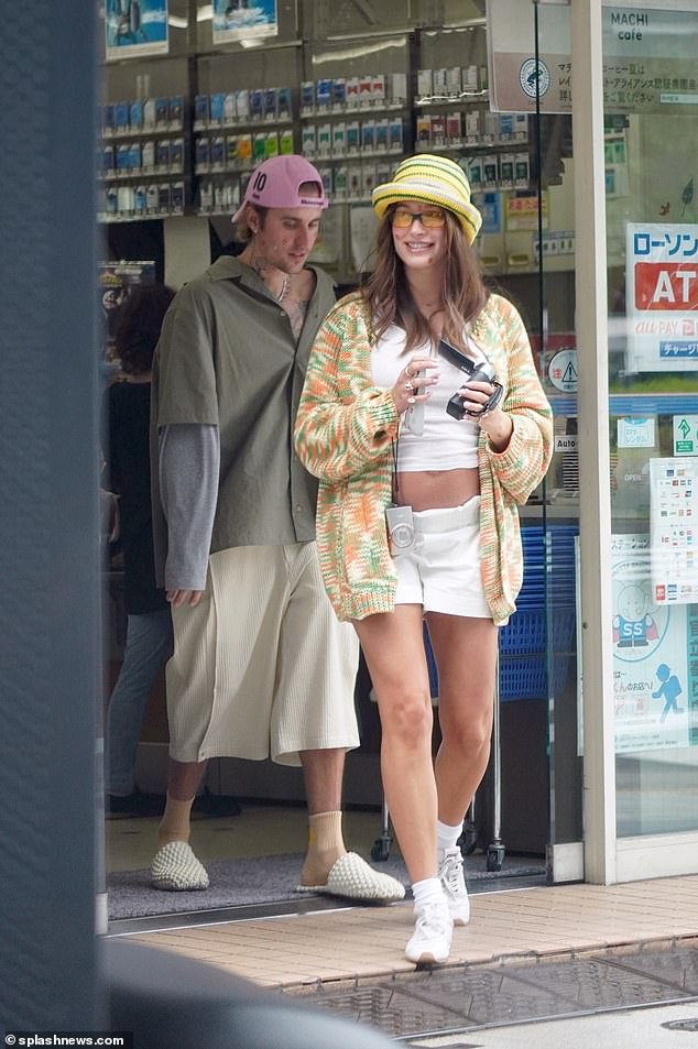 Hailey Bieber proudly shows off her baby bump during a Tokyo shopping trip with Justin Bieber