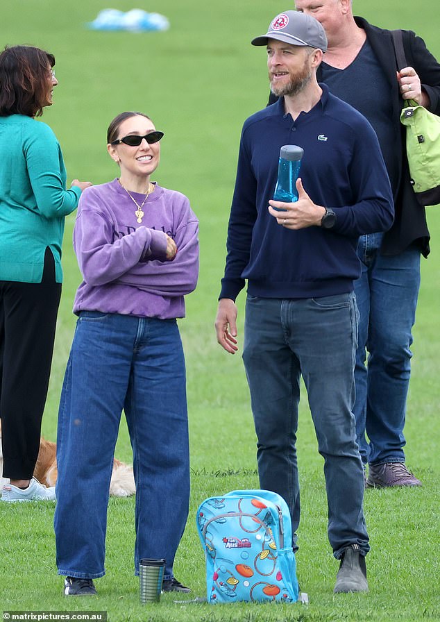 Zoe Foster-Blake, the founder of Go-To skincare, looked fashionable yet comfortable in her purple jumper and wide-legged jeans while watching her son’s soccer game. She wore gold jewelry and dark designer shades, her brown hair styled in a tight bun. Meanwhile, husband Hamish kept things casual in black jeans and a thin sweater, pulling on a cap and boots for the outing. The couple seemed to be enjoying their family time despite the chilly weather, supporting Sonny as he raced up and down the field.