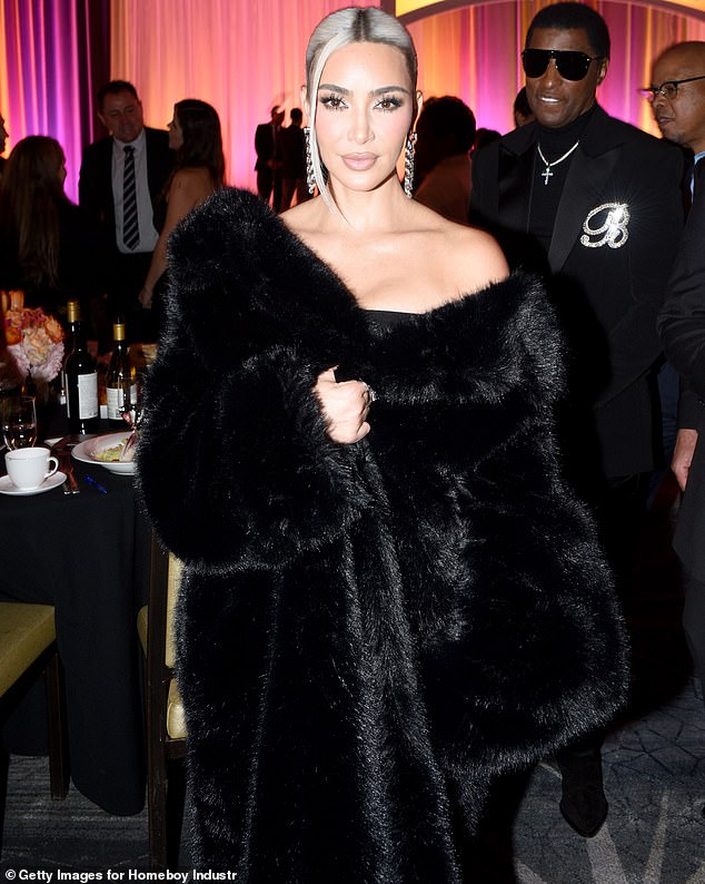Kim Kardashian debuted her new ice blonde hair at the Homeboy Industries’ Lo Maximo Awards in Los Angeles, an event honoring beneficiaries of the reentry program for prisoners. Being recognized for her legal activism efforts, Kim shone in a glamorous black fur coat, accessorized with drop earrings, and makeup. Her hairstylist, Chris Appleton, was responsible for the elegant bun hairdo. Kim’s legal work includes supporting the FIRST STEP Act, resulting in the early release of thousands of convicts. She mingled at the event with celebrities like Jane Fonda and Father Greg Boyle while showcasing her glamorous appearance.