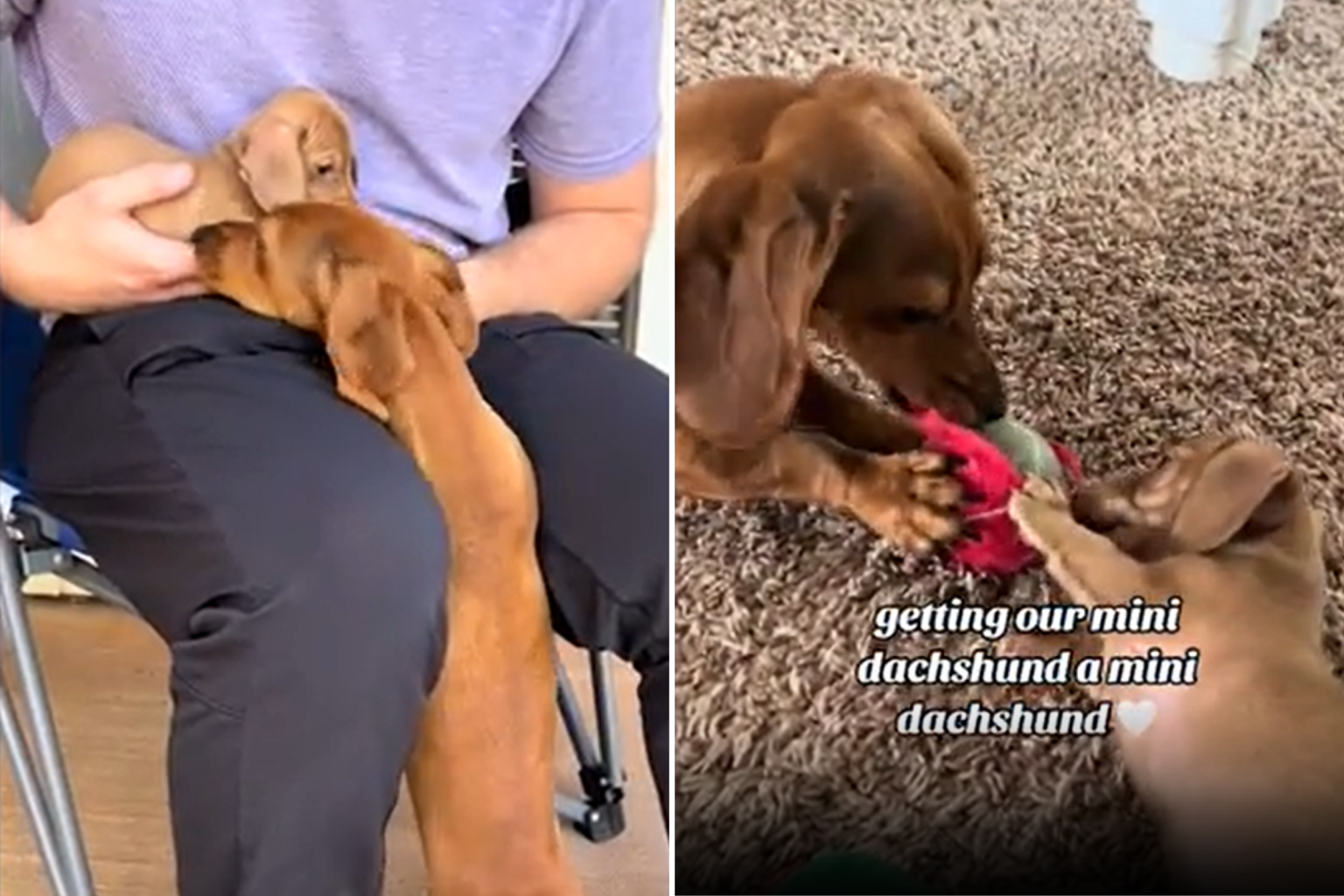 Emma Peters, a 23-year-old dog owner, received a dachshund puppy named Hazel as a Valentine’s Day surprise from her fiancé in 2023. Knowing that Hazel needed a companion, Peters decided to get another dachshund puppy to keep her company. In April 2024, Peters introduced a two-month-old dachshund named Heidi to Hazel, and the two instantly formed a strong bond. They now do everything together, including tiring each other out as they play and get along perfectly. Peters shared their adorable meeting on social media, where the video gained millions of views and likes.