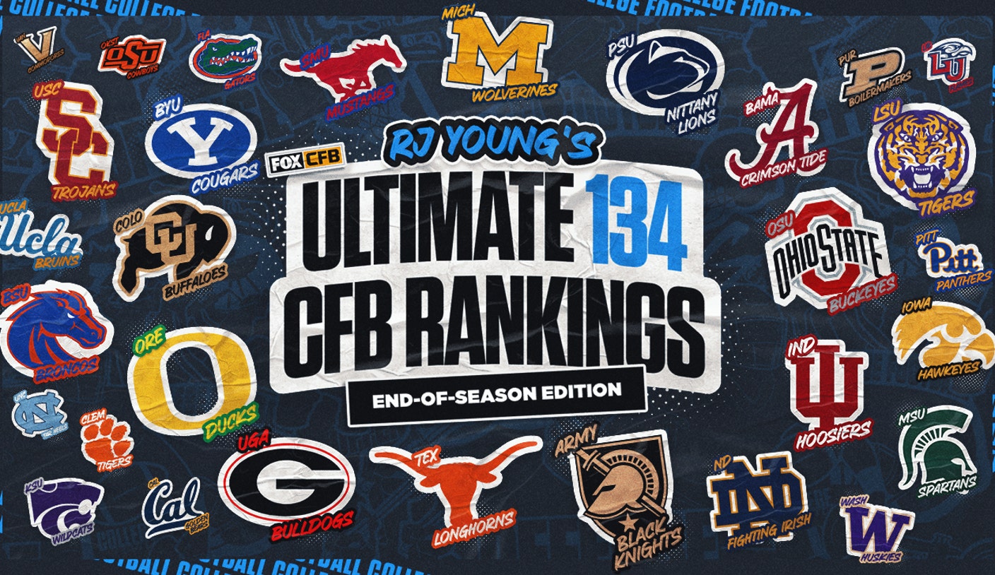 Welcome to my Ultimate 134 College Football Rankings — end-of-season edition!A ranking of the entire Football Subdivision is a service I wanted to provide at the beginning of the year and at the end of the regular season, because I wanted to acknowledge not just all the teams in the FBS, but all of those teams brave enough to field 11 on each side of the ball and play 12 games in the toughest division of the sport.This season is particularly interesting when it comes to performing a ranking of this size because we’ve got such volatility in the sport due to the emergence of the transfer portal, immediate eligibility upon transfer, the use of name, image and likeness, unprecedented movement among teams from conference to conference, and the introduction of the 12-team format of the College Football Playoff.In performing a ranking like this, the challenge shifted from that of the preseason, where I used all available knowledge to create a ranking based on who I thought the best teams were at the start of the season, to using empirical evidence, as well as the eye test, to assess a ranking for each team. Naturally, teams that won more games are ranked higher, but I also considered five other important factors when finalizing these rankings:1. Did this team have a signature win? Michigan’s upset of Ohio State is one example of a signature win, the kind that throws into flux not just the immediate future of OSU, but that of those connected to their strength of record throughout the sport.2. How did you fare against ranked opponents? A team like South Carolina, which played nine teams that were ranked in my top 25 at one time or another throughout the season, deserves recognition for the tough schedule it played.3. Did you fire your head coach before the season ended? If the head coach was enough of an impediment to winning that the athletic director made the decision to fire him in the middle of the season, that has to count against how we might view a team that is, by definition, without a permanent head coach.4. Did you go bowling? Teams that met the .500 threshold to go bowling this year deserve to be ranked ahead of most teams who didn’t because winning matters. However, I did make exceptions. Kansas, for instance, won just five games but beat three ranked opponents in a row to prove their merit.5. Did you start fast or finish strong? Baylor finished the season with six consecutive wins, while Pittsburgh finished with five consecutive losses.This Ultimate 134 College Football Ranking serves to put the 12-game regular season into perspective — not the postseason. While I’ll perform another top 25, it bears mentioning 119 programs won’t be in it. And this is as much for them as it is for Oregon fans, who get to see their undefeated Ducks sitting at No. 1.With that, here is a look at my Ultimate 134 College Football Rankings at the conclusion of the 2024 college football regular season.Have an issue with my rankings? Think your alma mater is too low, or your school’s rival is too high? Get at me on Twitter, @RJ_Young, and I’ll select my favorite tweets and respond to them in a future article.1. Oregon Ducks Record: 12-0Conference: Big TenOriginal 134 Ranking: 4The Ducks have the honor of being the only team to run the table at 12-0. They’ll enter the Big Ten Championship Game against Penn State as the favorite and with the best chance of winning the No. 1 overall seed in the first-ever 12-team College Football Playoff.2. Texas LonghornsRecord: 11-1Conference: SECOriginal 134 Ranking: 3The Longhorns finished the regular season 11-1 and punched their ticket to the SEC Championship Game for a rematch with the only team that beat them this season. Their win against Texas A&M all but secured their spot in the 12-team CFP, regardless of whether they win the league title game.3. Notre Dame Fighting IrishRecord: 11-1Conference: IndependentOriginal 134 Ranking: 16The Fighting Irish closed out the regular season with a win over USC, putting them at 11-1, with their lone loss coming to an upstart Northern Illinois team that has since looked like it was playing well above its head. Notre Dame’s wins against Texas A&M, Army and Navy contributed to what should be an invitation to the CFP with a chance to host a playoff game.4. Penn State Nittany Lions Record: 11-1Conference: Big TenOriginal 134 Ranking: 14Penn State put together an 11-1 season and an opportunity to not just win its first Big Ten Championship since 2016, but to unseat the No. 1 team in the country and perhaps win the No. 1 seed in the College Football Playoff.This is also the first time Penn State has won 11 games in the regular season since 2008.5. Indiana HoosiersRecord: 11-1Conference: Big TenOriginal 134 Ranking: 97The Hoosiers made history this season as the first Indiana team to win 10 games in a season. With their only loss coming against a top-10 Ohio State team, the Hoosiers have shown enough to earn an invitation to the CFP for the first time.Not bad for a program that had won just nine games in the previous three years — combined.6. Georgia BulldogsRecord: 10-2Conference: SECOriginal 134 Ranking: 2Having earned the right to play for the SEC Championship following Alabama’s loss to Oklahoma, the Dawgs finished 10-2 after an 8OT thriller against rival Georgia Tech. Barring a devastating loss in the title game, Georgia should be one of the 12 teams playing for the national title in three weeks.7. Ohio State BuckeyesRecord: 10-2Conference: Big TenOriginal 134 Ranking: 1The Buckeyes were in the driver’s seat to secure a spot in the Big Ten Championship Game, lock up a guaranteed spot in the CFP, and end a miserable three-game losing streak to their hated rivals. Then, it all came apart.The Buckeyes fell to the Wolverines, 13-10, and Ryan Day became the first head coach to lose four games in a row to Michigan since John Cooper (1988 to 1991). 8. SMU MustangsRecord: 11-1Conference: ACCOriginal 134 Ranking: 32