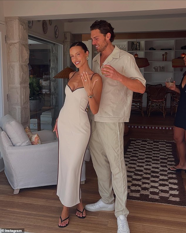Summarize this content to 2000 words in 6 paragraphs Warren Ginsberg is set to walk down the aisle. The Ray White Real Estate agent shared the happy news to his Instagram page this week, posing alongside his bride-to-be, Casey James. The 36-year-old and the 26-year-old Réforme Beauty founder held a ritzy party to celebrate their engagement. In the images, Casey showed off her massive diamond ring as she cuddled up to her fiancé. The pair enjoyed festivities at a stunning beachside property with a spread of food available for guests. They partied into the night with the bride-to-be sipping a cocktail and dancing on a balcony to celebrate. Warren Ginsberg is set to walk down the aisle. The Ray White Real Estate agent shared the happy news to his Instagram page this week, posing alongside his bride-to-be, Casey James. Both pictured ‘Off market’ Warren wrote in his caption alongside a diamond ring emoji. Ginsberg, a Sydney socialite and real estate agent, enjoyed a brief romance with actress Jodi Gordon in 2016 following her split from ex-husband Braith Anasta.In 2021, he faced court after being charged with possessing cocaine at Bondi Beach. NSW Police confirmed to Daily Mail Australia at the time that Ginsberg had been spotted by officers patrolling the Bondi Beach area on August 14. Court documents show Ginsberg bought two bags containing 1.3g of cocaine for $600.He pleaded guilty to drug possession in Waverley Local Court on September 14 and was fined $500.It was the third time he had been charged with drug possession since 2007, however it was the first time he had been convicted of the offence. Magistrate Carolyn Huntsman noted that the real estate agent was suffering a heartbreak at the time. The 36-year-old and the 26-year-old Réforme Beauty founder held a ritzy party to celebrate their engagement In the images, Casey showed off her massive diamond ring as she cuddled up to her fiancé The pair enjoyed festivities at a stunning beachside property with a spread of food available for guests. They partied into the night ‘(There was a) relationship breakdown at the same time – a relationship that you had hoped to have some permanence,’ Magistrate Huntsman said.’You are a personality type who strives to achieve and work hard and you were under considerable stress at the time of the offence.’Ginsberg is the director of Ray White Double Bay and is a regular face in Sydney’s eastern suburbs club scene.He made headlines in December 2016 when he was pictured kissing Jodi Gordon, a model and actress who has been a tabloid fixture since the mid 2000s.The pair dated for just four months before calling it quits, amid reports ‘there was too much friction’ between them. ‘The relationship is done,’ a source told Woman’s Day in April 2017. ‘Warren has told friends that he and Jodi are no longer an item. They might have looked good on each other’s arms but there was too much friction,’ they added.Gordon’s schedule, which at the time consisted of flying back and forth between Sydney and Melbourne to film Neighbours, was said to have contributed to the split. He made headlines in December 2016 when he was pictured kissing Jodi Gordon, a model and actress who has been a tabloid fixture since the mid 2000s. Pictured together In 2022, he was linked to eastern suburbs glamour model Indi Thew (pictured) ‘It was all fun at the start but these two had very different commitments,’ the insider claimed. In 2022, he was linked to eastern suburbs glamour model Indi Thew.According to The Daily Telegraph, Ginsberg had been quietly dating the then 24-year-old for a few months, and was already ‘smitten’ with the busty blonde. Ginsberg was reportedly so besotted that he even convinced Thew to shut down her lucrative account on adult subscription site OnlyFans. Thew joined OnlyFans in August, 2021, following reports she’d split from her boyfriend-of-six-months Angus Onisforou.