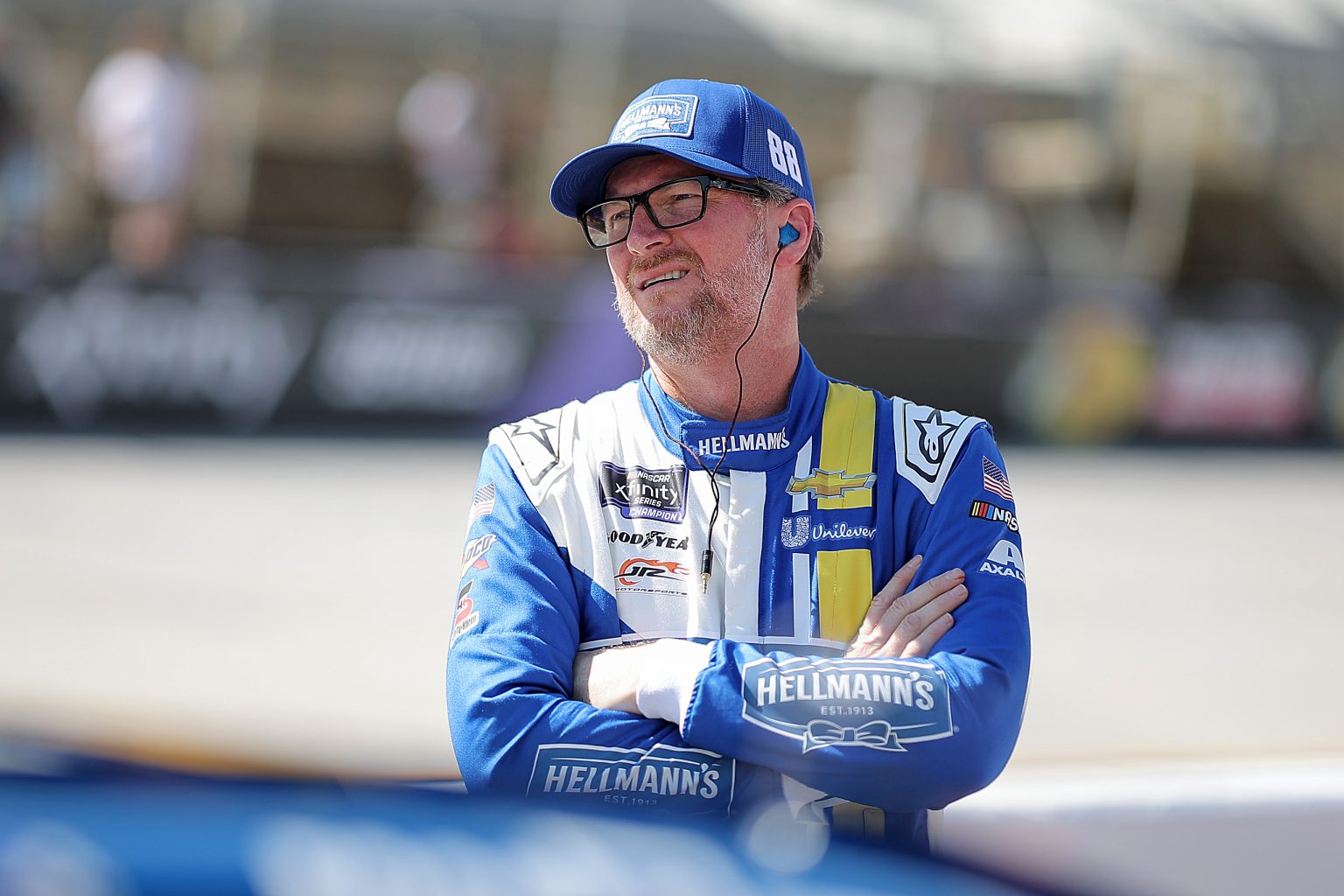 Dale Earnhardt Jr. looks on during qualifying for the NASCAR Xfinity Series Food City 300 at Bristol Motor Speedway on September 20, 2024 in Bristol, Tennessee.