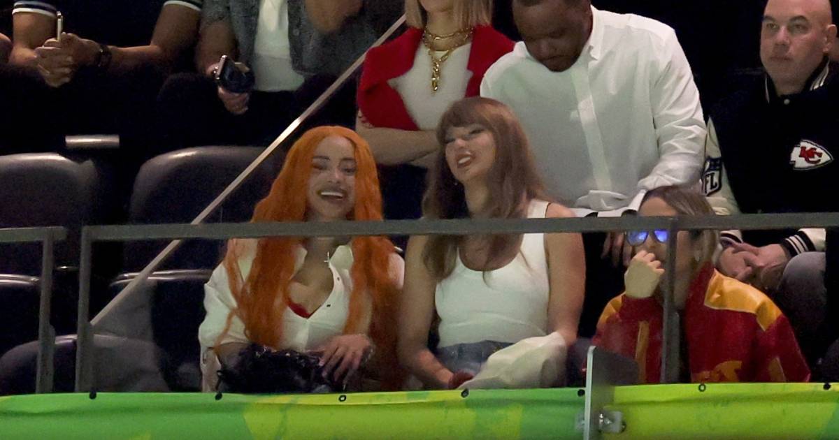Swift, 35, appeared confused, turning to friend Ice Spice to ask, “What’s going on?”