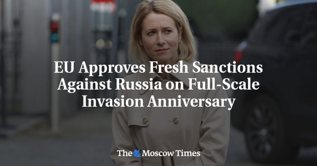 The EU formally approved a fresh round of sanctions against Russia on Monday, aiming to curb Moscow’s war effort on the third anniversary of its full-scale invasion of Ukraine.