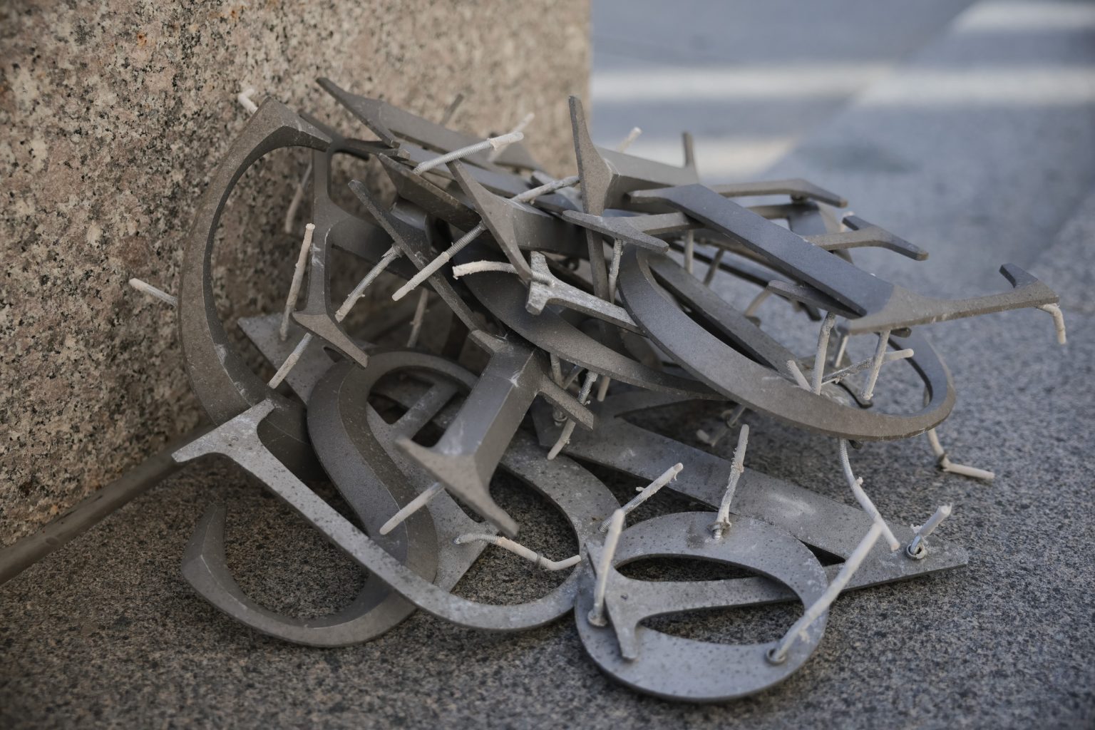 A pile of building letters after a worker removed the U.S. Agency for International Development sign on its headquarters on February 7, 2025, in Washington, D.C.