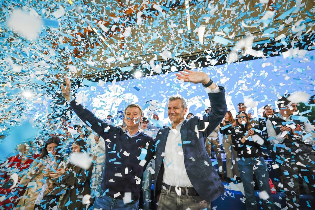 Summarize this content to 2000 words in 6 paragraphs in english La clave parecía gallega, pero en realidad no. Alberto Núñez Feijóo ha aprovechado el aniversario de la primera mayoría absoluta en unas gallegas de su sucesor en la Xunta, Alfonso Rueda, para intentar marcar perfil propio en política internacional frente a los partidos con los que colinda a derecha e izquierda. A cuenta de las últimas decisiones de Donald Trump — aranceles que descabalan buena parte de las preconcepciones liberales de Occidente y unas negociaciones con Rusia sobre Ucrania que menoscaban el papel de la UE y de los propios ucranios—, el líder del PP ha vuelto a su tierra para asegurar que él no es del PSOE ni de Vox tampoco en su posición frente al americano, a quien apenas, más allá de alguna mención tangencial, se había referido hasta ahora. “No voy a ser ni de los que faltan al respeto a los presidentes de países democráticos ni de los que callan cuando nuestros sectores productivos están en riesgo”, ha proseguido en un discurso en su mayor parte en castellano. “No soy como el PSOE o Vox: ni insulto al presidente de los Estados Unidos ni soy cómplice de algunas de sus decisiones que no compartimos”, ha insistido, sin mencionar ninguna.Feijóo ha lanzado una de sus muchas pullas a Pedro Sánchez a cuenta precisamente de la relación con Ucrania: “No soy de los que llaman al señor [presidente ucranio, Volodímir] Zelenski para apoyarle y, a la vez, soy el que más compra gas ruso de toda Europa”, ha asegurado. “Voy a defender las relaciones internacionales de España bajo los principios de respeto y equilibrio. Defenderé siempre los intereses de mi país, de nuestros agricultores, ganaderos y de todos los sectores productivos, porque lo he hecho siempre y porque me he dedicado a servir. Por tanto, nunca tendré una política exterior que beneficie a mi partido pero perjudique a la nación”, ha asegurado, sin descender a detalles o explicaciones para esa última afirmación.Un año después de que su partido superara por dos escaños el mínimo para conseguir la mayoría absoluta, por quinta vez consecutiva y primera sin él en el Pazo de Raxoi, Feijóo ha sembrado su discurso de “Galicia”, “Galicia”, “Galicia”. Pero no ha mentado medidas concretas del Gobierno de Alfonso Rueda, sino generalizaciones sobre las virtudes de su tierra, “nacionalidad histórica” y “parte de la nación española”. “Si Galicia late, el PP de España funciona; si Galicia está más potente que nunca, el PP de España es el primero de España”, ha asegurado. La política de su partido en la comunidad autónoma —ha añadido— se basa en “una agenda centrada en las necesidades de la gente y no en los escándalos del Gobierno”.Y a cuenta de esa “agenda de escándalos”, como ha caracterizado varias veces las investigaciones judiciales abiertas contra personas del PSOE o de su entorno, Feijóo se ha soltado para regocijo de los asistentes —unos 2.500 según la valoración del propio PP— al “cumpleaños de Rueda” en el Multiusos Fontes do Sar de Santiago. Feijóo ha ridiculizado al Ministerio de Vivienda. “¿Sabíais que hay un Ministerio de Vivienda? Sí, sí —se ha respondido en tono de sorna—, dentro de los 22 ministerios. Es tan útil como el puesto de trabajo del hermano del presidente Sánchez en la Diputación de Badajoz, más o menos sin estrenar. Tanto el puesto del hermano como el Ministerio de Vivienda están sin estrenar”, ha bromeado, en referencia al puesto directivo como jefe de la Oficina de Artes Escénicas de David Sánchez, hermano del presidente del Gobierno, objeto de una investigación judicial por supuestas irregularidades en su contratación.Otro de los frentes judiciales abiertos, el que atañe a Álvaro García Ortiz, ha servido a Feijóo para calificar al fiscal general del Estado de ser “otro ministro más del Ejecutivo de Sánchez”. Al fiscal, “¿quién le va a pedir que se vaya?”, se ha preguntado: “¿El marido de Begoña? ¿El hermano del músico de Badajoz? ¿El inseparable de Ábalos? ¿El que confiaba sus avales a Koldo? ¿El que recibe instrucciones desde el exilio? ¿El que presume de los ERE andaluces? ¿El que miente a todos los españoles? Ese no puede decirle al fiscal general del Estado que se vaya, no tiene autoridad ni dignidad para hacerlo”, ha embestido el presidente del PP.No han quedado ahí sus comentarios ridiculizantes para el Gobierno de coalición, aunque ha añadido un elemento a PSOE y Sumar que no está presente en La Moncloa: Podemos. “Tenemos a los ministros de Sumar y los de Podemos discutiendo sobre cuál de los dos ha mentido más. ¿Os imagináis una rueda de prensa con dos conselleiros, uno diciendo una cosa, el otro la contraria y corrigiéndose entre ellos diciendo: ‘No es así, no es así’?”, se ha guaseado, aludiendo a la rueda de prensa tras el Consejo de Ministros de este martes en el que la portavoz Pilar Alegría (PSOE) y Yolanda Díaz (Sumar) dejaron claras sus discrepancias por la tributación que debe tener el salario mínimo tras su subida.Feijóo se ha referido brevemente a la figura del fundador de su partido y antecesor suyo en el cargo de presidente de Galicia. “Aquí están los orígenes del PP de España, aquí trabajó uno de los padres de la Constitución, Manuel Fraga”. Sus palabras llegan después de que a principios de mes un municipio gallego gobernado por el PP y gracias a la abstención de ese partido haya aprobado retirar el nombre del también ministro franquista a una calle.A Fraga se ha referido también Alfonso Rueda, a quien un año después de su llegada a la Xunta le sonríen las encuestas. La más reciente de Sondaxe asegura que revalidaría sus 40 escaños y le concede el único aprobado entre los líderes políticos valorados. “Reivindico la memoria de Manuel Fraga y es un orgullo haberlo sucedido”, ha zanjado un Rueda más a