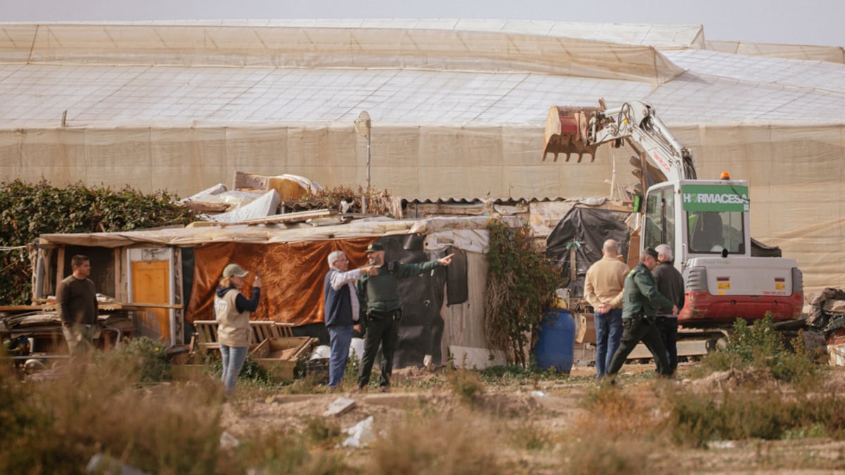 Summarize this content to 2000 words in 6 paragraphs in english Con cara seria, cansado traspasar la noche prácticamente sin dormir, Mehdi, marroquí de 23 años, observaba cómo se le acercaba una excavadora. “¿Qué vamos a hacer ahora?”, se preguntaba consciente de que su chabola, construida con palés y plásticos, iba a ser derribada por mandato judicial en cuestión de segundos. A su alrededor, sobre una valla, había mantas, neveras, ventiladores, bolsas de ropa, herramientas, una camiseta de la selección de Marruecos. Eran los pocos enseres que quedaban a sus vecinos, los habitantes del cortijo El Uno, a las afueras de San Isidro, en el municipio de Níjar (Almería, 31.816 habitantes). Es el asentamiento que durante la mañana de este martes fue demolido por una excavadora, dejando a sus 60 residentes en la calle sin que ninguna administración les ofreciese alternativa.El Juzgado de Primera Instancia Número 1 de Almería ordenó a principios de mes el desahucio de este campamento tras la denuncia del propietario del terreno. Este martes las chabolas del lugar desaparecieron con rapidez tras los golpes de la maquinaria, mientras que se dejaron en pie un puñado de pequeñas casitas medio en ruinas y una vieja nave industrial, donde convivían varias familias con hasta nueve menores. Algunos de sus habitantes del recinto llevaban allí diez años y otros apenas unos meses, durmiendo en habitaciones estrechas, con luz pero sin agua potable. Y en las que este martes apenas quedaban cajas vacías, bidones, papeles y perchas. También un pequeño peluche de Peppa Pig y una cocinita de juguete.A primera hora de la mañana, ajeno a todo, un pequeño de dos años y medio trataba de subirse sin caer a una pequeña bicicleta de plástico. “El resto de niños está ya en el colegio”, explicaba Fouciya, mujer en la treintena que tenía poco claro qué hacer con su vida ni dónde dormir a partir de ahora. Junto a una pintada en la que se leía “No al desalojo” había un patinete con dos maletas. Es todo lo que podía llevar otra de las residentes de este rincón rodeado de invernaderos. En ellos trabajan muchos de los habitantes de El Uno, con papeles o sin ellos. “Tomate, pimiento, calabacín”, relataba Mehdi, empadronado en Níjar desde hace años. “Hacemos temporadas, lo que podemos”, añadía su amigo Maati, de 27 años. “No sabemos a dónde ir”, añadía el joven, que lleva un lustro empleado de manera intermitente en la agricultura intensiva. Como ellos, otras 3.500 personas residen en una treintena de campamentos similares en la comarca de Níjar. El mayor de ellos, Atochares, acoge a más de 500 migrantes, casi todos manos de obra para el campo.Los residentes de El Uno pasaron todo el lunes, noche incluida, haciendo portes para sacar sus cosas antes de ser desahuciados. Unos han encontrado un sofá en casa de algún pariente. Otros tenían previsto montar de nuevo su chabola en algún campamento cercano. Una chica decidió viajar a Huelva en busca de trabajo y algunos más, a Murcia. Otra familia ha decidido retornar a Marruecos. Sentados sobre un viejo colchón en el arcén de la carretera, seis chavales miraban con desazón la que antes era su casa. “No sabemos qué hacer, es difícil”, decían. “Llevamos semanas buscando una vivienda, pero no hay nada para alquilar”, denunciaba Abdoul, de 33 años. Más suerte tendrán los seis hombres que estudiaba acoger Almería Acoge en uno de sus alojamientos temporales y las dos mujeres cobijadas por el Servicio Jesuita para Migrantes (SJM). Tres de las trabajadoras de esta entidad ayudaban, Kamal, panadero de casi 50 años que ha dedicado una década de su vida a los invernaderos, a guardar sus cosas mientras él se subía a una bicicleta para buscar un techo donde dormir. “La vida es muy dura”, señalaba.“Se están buscando la vida”El desalojo transcurrió con normalidad. Aunque varios activistas montaron rudimentarias barricadas en los tres accesos al asentamiento, una excavadora las retiró con facilidad. Un dispositivo de Guardia Civil y Policía Local acompañó a la comitiva judicial que, puntual, a las 9.40 horas previstas, llegó con las notificaciones judiciales. Minutos después, las máquinas derribaban con facilidad las chabolas “sin incidentes”, confirmaban desde la subdelegación del Gobierno en Almería. “Es un acto injusto e inhumano”, han denunciado las organizaciones sociales, sindicatos y partidos políticos que forman la plataforma Derecho a Techo, que también ha criticado la pasividad de las administraciones y de la patronal agraria. “Ahora no tienen nada: solo les queda el suelo para dormir”, subrayaba el activista Ricardo Pérez mientras un grupo de chatarreros arramblaba con el mobiliario del campamento.Tres agentes de la Guardia Civil esperan frente una barricada improvisada en Níjar (Almería).Chema ArteroUna excavadora en la zona del asentamiento, este lunes. Chema ArteroDos mujeres migrantes cerca del campamento tras el derribo.Chema ArteroUna de las chabolas del cortijo El Uno de San Isidro, en Níjar (Almería), este martes.Chema ArteroUn migrante traslada un ventilador.Chema ArteroUna excavadora en la zona del asentamiento, este lunes. Chema ArteroMonopatín con los enseres de alguno de los migrantes antes de ser desalojado en una infravivienda del asentamiento Cortijo El Uno de Níjar (Almería).Chema ArteroUna mujer transporta una maleta y una bolsa con sus pertenencias mientras una excavadora derriba las chabolas en el cortijo El Uno de San Isidro, en Níjar (Almería).Chema ArteroPintadas contra el desalojo, este martes, en el cortijo El Uno de San Isidro, en Níjar (Almería). Chema ArteroMigrantes, tras ser desalojados del campamento en el cortijo El Uno de San Isidro, en Níjar (Almería).Chema Artero“La gente se está buscando la vida. Es una situación muy traumática ver cómo se destroza la vida, el hogar de estas personas. Y peor aún es ha