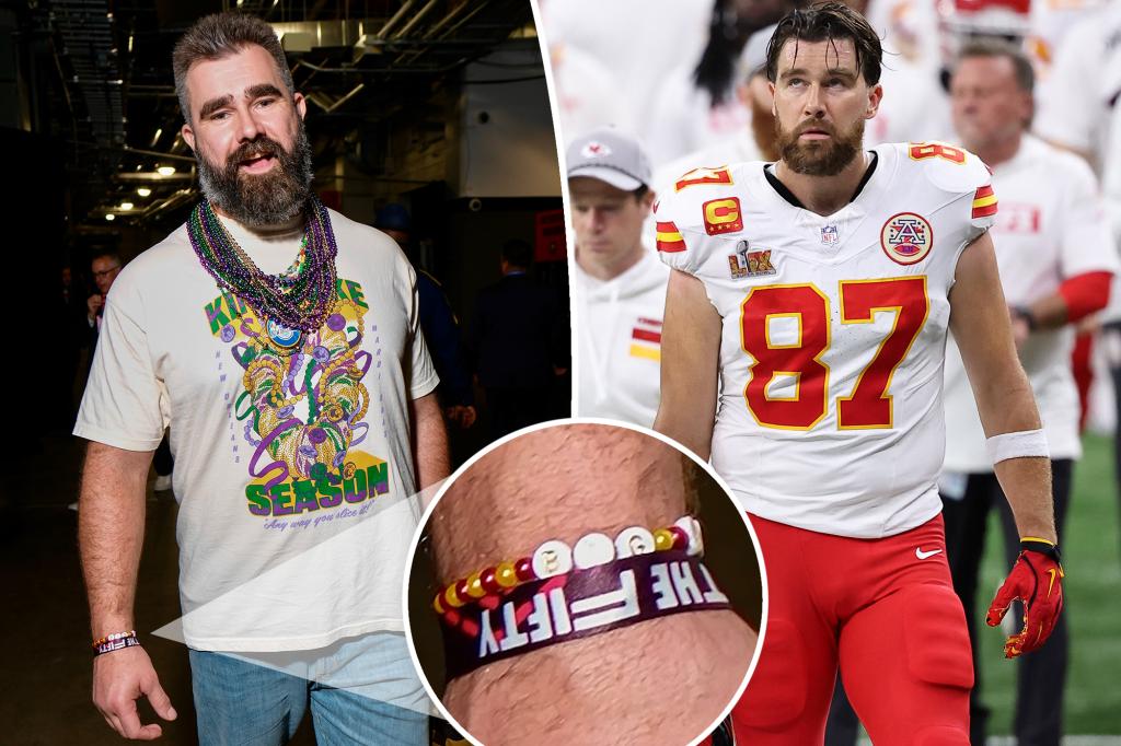 Despite his long career playing for the Philadelphia Eagles, Jason Kelce made it clear he’s rooting for the Kansas City Chiefs at Super Bowl 2025 with a well-placed (and Taylor Swift-approved) accessory.