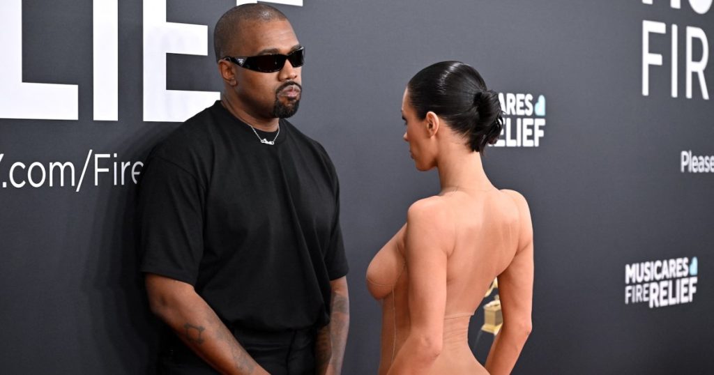 Kanye West is defending his wife Bianca Censori’s naked dress at the Grammy Awards.