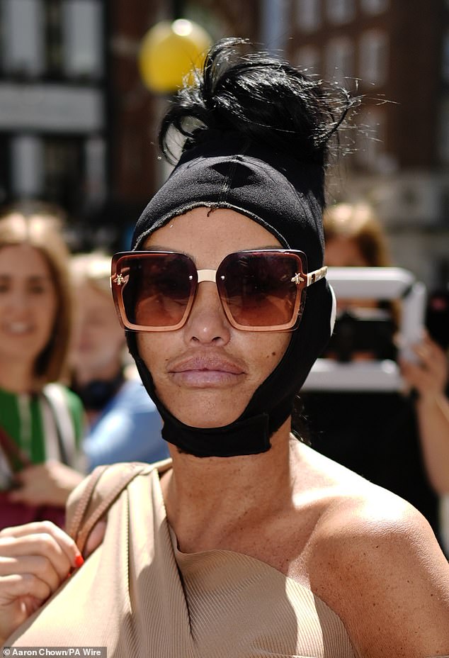 Her court appearance comes after an arrest warrant was issued by a judge after she failed to attend a hearing relating to her enormous £760,000 debt Katie’s dramatic arrest came after she skipped a bankruptcy hearing for a £10,000 facelift in TurkeyKatie’s dramatic arrest came after she skipped a bankruptcy hearing for a £10,000 facelift in Turkey. The former glamour model was remanded in custody at a West London police station and bailed a few hours later by an out-of-hours magistrate, ahead of her court appearance on Friday morning.She turned up on foot through the main entrance wearing a beige outfit and black head covering to conceal her injuries caused by the facelift.Judge Schaffer discharged the arrest warrant issued against her on July 30 by a different judge after she failed to attend a previous hearing.The warrant was originally issued by a judge after she failed to attend a hearing relating to her enormous £760,000 debt.Katie previously said she was ‘not running from matters’, but was ‘away working for a documentary on corrective surgeries’ during the court hearing.In a now-deleted statement on Instagram, Katie wrote: ‘I am aware that I am about to be detained at the airport which is obviously what the courts feel is necessary.’I do hope of course for my son’s sake who is with me that they will allow some dignity and protection for at least his sake as this will be extremely disturbing for him to see. Whilst I understand the importance and severity of the matter I do feel like I am being treated like a criminal.’ Katie was remanded in custody at a west London police station and bailed a few hours later, ahead of her court appearance on Friday morningThe mother-of-five, who lives in Sussex, failed to appear in front of a judge on July 30 as a part her £760,000 bankruptcy court proceedings and instead flew to Turkey on holiday for her sixth facelift while staying at a £133-a-night five-star hotel.Katie was aware she would be detained at the airport but had asked police that they ‘allow some dignity and protection’ for Harvey, claiming it would be ‘extremely disturbing for him to see’.In a statement posted to Instagram earlier this week, Katie claimed she had been in Turkey filming a documentary.Discussing her son Harvey, the model asked authorities ‘allow some dignity and protection for at least his sake as this will be extremely disturbing for him to see’.While acknowledging the ‘severity’ of the matter, Katie said she was being treated ‘like a criminal’ and declared the ‘unfortunate financial circumstance’ did not make her a ‘criminal or bad person’.