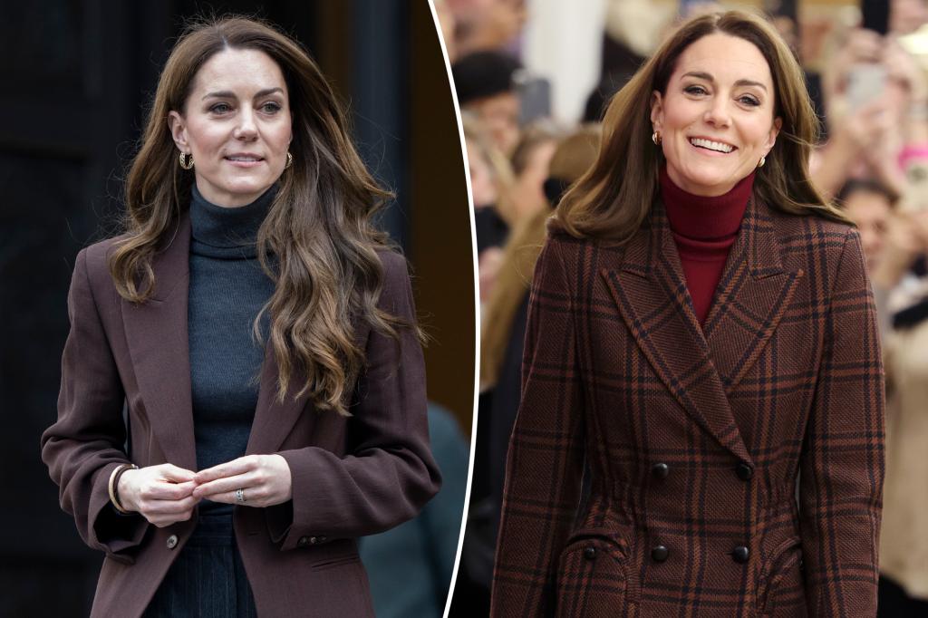 Today, for instance, Middleton wore a Blazé Milano checkered coat, maroon Gianvito Rossi boots ($1,695) and vintage Katherine James pearl earrings ($1,261) during a visit to a prison — which was shared by many accounts dedicated to identifying her outfits.