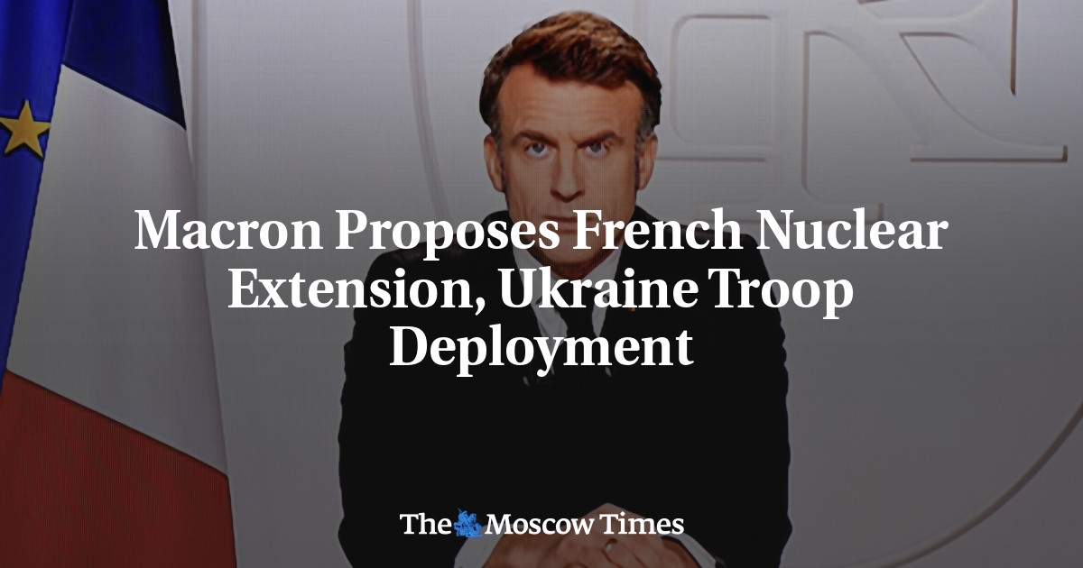 rewrite this title Macron Proposes French Nuclear Extension, Ukraine Troop Deployment