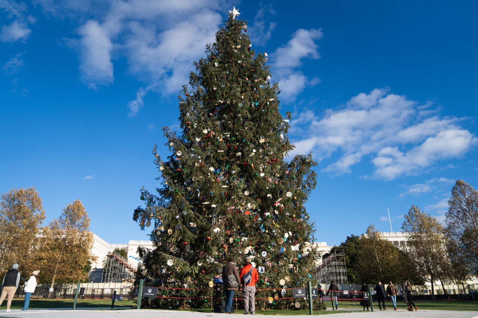 The Capitol Christmas tree is seen outside the U.S. Capitol in Washington D.C, on December 6, 2024. A map shows the states that produce the most Christmas trees in the U.S.