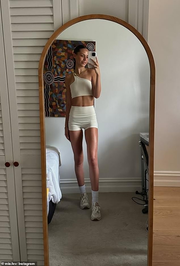 Mia Fevola is known for her sizzling selfies where she shows off her banging body. And on Monday, she did what she does best as she flaunted her fit figure once again in a revealing post.The 24-year-old daughter of former footballer Brendan Fevola took to her Instagram Stories to share a picture of herself in a very skimpy ensemble.Mia flaunted her toned figure in white athleisure wear consisting of shorts and a crop top as she posed in front of a mirror.The skintight outfit showed off her sculpted midriff while her trim pins were on full display.She completed her look with a pair of white sneakers and white socks. Mia Fevola took to her Instagram on Monday to flaunted her toned figure in tiny shorts and a white crop topThe influencer wore her dark long hair slicked back as she worked her best angles for the camera.The post comes after Mia broke her silence about engagement rumours surrounding her and boyfriend Bass Miller last month.The influencer and her partner made headlines in August when Bass called the model his ‘New Mrs’ on Instagram, prompting speculation he had proposed.However, Mia told Daily Mail Australia while at the Melbourne Cup at Flemington Racecourse that she is not engaged and the post was referring to the new hair-do she received at the time.’I don’t know where that came from. It was directed at my hair because I was blonde and then I dyed it dark,’ Mia said of Bass’ now deleted post.She explained her beau was only referring to her ‘new look’ and not accidentally revealing they were engaged as previous reports suggested.’He was like, “New Mrs,” saying that I dyed my hair. New look. I was shocked to see [the reports],’ she added.When pressed about whether she and Bass had any engagement plans for the future after almost two years together, Mia said she was uncertain. The post comes after Mia broke her silence about engagement rumours surrounding her and boyfriend Bass Miller last month The influencer and her partner made headlines in August when Bass called the model his ‘New Mrs’ on Instagram, prompting speculation he had proposed’Who knows. We’re just enjoying our time at the moment,’ she explained.’Everyone keeps saying “new romance” but we’ve been together for nearly two years now. It’s gone so quick.’Earlier this year, Mia revealed she will be keeping her beau out of the public eye.She told Stellar Magazine she learned a hard lesson after going public with footy star ex-boyfriend Jamarra Ugle-Hagan.The pair became the target of relentless online trolls during their romance.’I learned a lot from that [experience]. I overshared when I was younger and I learnt the hard way that some things are better left private,’ she said.'[The attention] would have happened with anyone, given I was posting about it so much.’Any public relationship opens the doors for a lot of negativity. There are always going to be critics out there.’Mia and Jamarra, 22, split at the end of 2021 as a result of intense scrutiny over their fledgling romance.The pair were inundated with hundreds of bullying messages on social media.Mia and boyfriend Bass went public with their romance in July of 2023.