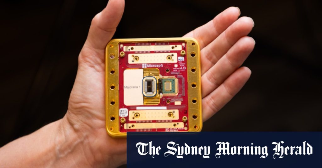 Summarize this content to 2000 words in 6 paragraphs Microsoft has announced a breakthrough it says could lead to a commercially useful quantum computer, more powerful than all the world’s computers combined, in a few years rather than decades.Scientists hope large-scale quantum computers could reproduce the complex interactions of molecules within chemical reactions, accelerating our knowledge of health on an atomic level and unlocking new drugs, chemicals and self-healing building materials.Microsoft’s new quantum chip is based on a new state of matter and a particle that previously only existed in theory.Credit: John Brecher/Microsoft“These calculations are so complicated that if a classical computer was as big as this entire planet, it would still not be able to compute it,” Microsoft’s corporate vice president of quantum Zulfi Alam said.“A quantum computer can do it, and can do it very, very well.”The new chip, called Majorana 1, generates a new state of matter needed to control a mysterious, once-theoretical particle for calculations, the company said. The chip was crafted atom by atom from aluminium and a semiconductor used in night-vision goggles called indium arsenide.LoadingCurrent computers are made from “bits”, which flip between 0 and 1. Quantum bits or “qubits” utilise subatomic particles which hover in a “superposition” of 0 and 1, harnessing the options in between these binary states to vastly accelerate calculations.The new chip hosts eight qubits. Microsoft aims to scale up to a quantum computer with a million qubits – the number required for real-world applications such as inventing a catalyst for breaking down microplastics – that could fit in the palm of your hand.For 20 years, Microsoft has pursued the creation of the new form of matter within the chip called a “topological state” where, put simply, quantum information is spread across a network of atoms rather than tied to a single particle.