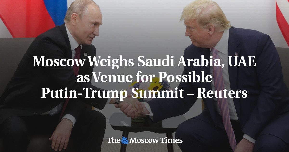 Moscow is considering Saudi Arabia and the United Arab Emirates as potential venues for future talks between Russian President Vladimir Putin and U.S. President Donald Trump, Reuters reported Monday, citing anonymous sources familiar with the matter.