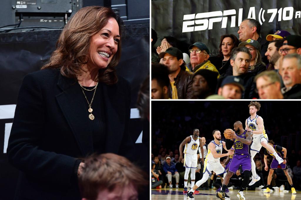 Former vice president Kamala Harris and her husband Doug Emhoff were spotted at a Los Angeles Lakers game Thursday night — with many quick to boast that “nobody even cared” she was there.