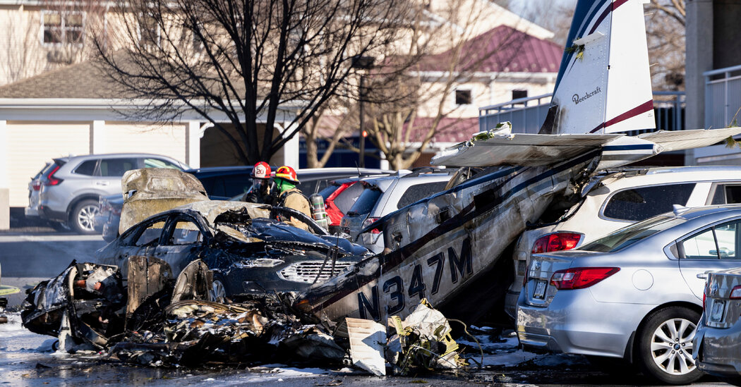 Summarize this content to 2000 words in 6 paragraphs A small aircraft carrying five people crashed in a parking lot of a retirement community in Lancaster County, Pa., on Sunday afternoon, according to local officials, after the pilot reported there was an “open door,” air traffic transmissions show.The aircraft, a six-seater Beechcraft Bonanza, crashed outside of Brethren Village Retirement Community at 3:18 p.m. after it took off from Lancaster Airport, Scott Little, the fire chief of Manheim Township Fire Rescue, said at a news conference on Sunday.According to a spokesperson for Lancaster General Hospital, all five people on the plane were transported to Lancaster General Hospital on Sunday. Two people were then transported to Lehigh Valley Health Network’s burn center by emergency flight crews, and one person was transported there by ground ambulance. Two people remain hospitalized at Lancaster General, the spokesperson said.No one on the ground was hurt, officials said.Duane Fisher, police chief of Manheim Township, said at the news conference that it looked like the aircraft skidded about 100 feet after hitting the ground. About a dozen vehicles were damaged, though there was no damage to buildings.According to the Aviation Safety Network, which provides real-time information on airline accidents and safety, the plane departed Lancaster Airport and was bound for Springfield-Beckley Municipal Airport in Springfield, Ohio.Shortly after taking off, the pilot reported there was an “open door,” and that the plane needed “to return for a landing,” according to an air traffic control recording. The pilot reported difficulty hearing the controller because of the wind.Videos on social media showed the plane and nearby vehicles engulfed in flames, with smoke billowing from the fire.The F.A.A. and the National Transportation Safety Board are investigating.