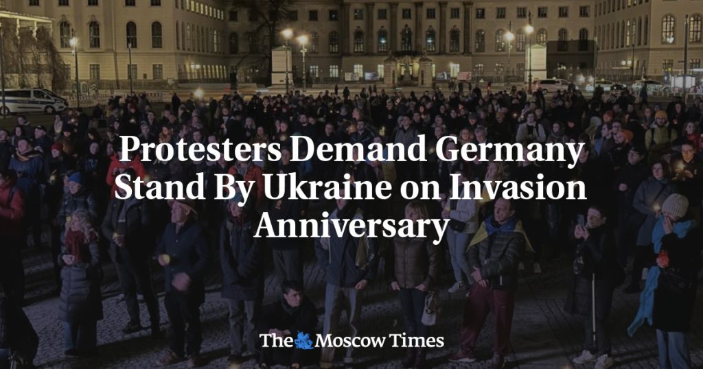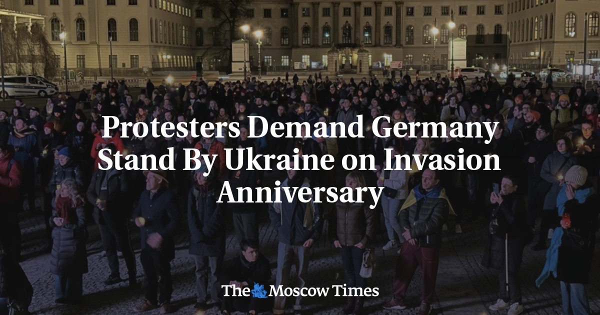 Protesters marched through Berlin on Monday to demand Germany stand by Ukraine on the third anniversary of Russia’s full-scale invasion, a day after Germans voted in elections in which support for Kyiv was a hot topic.