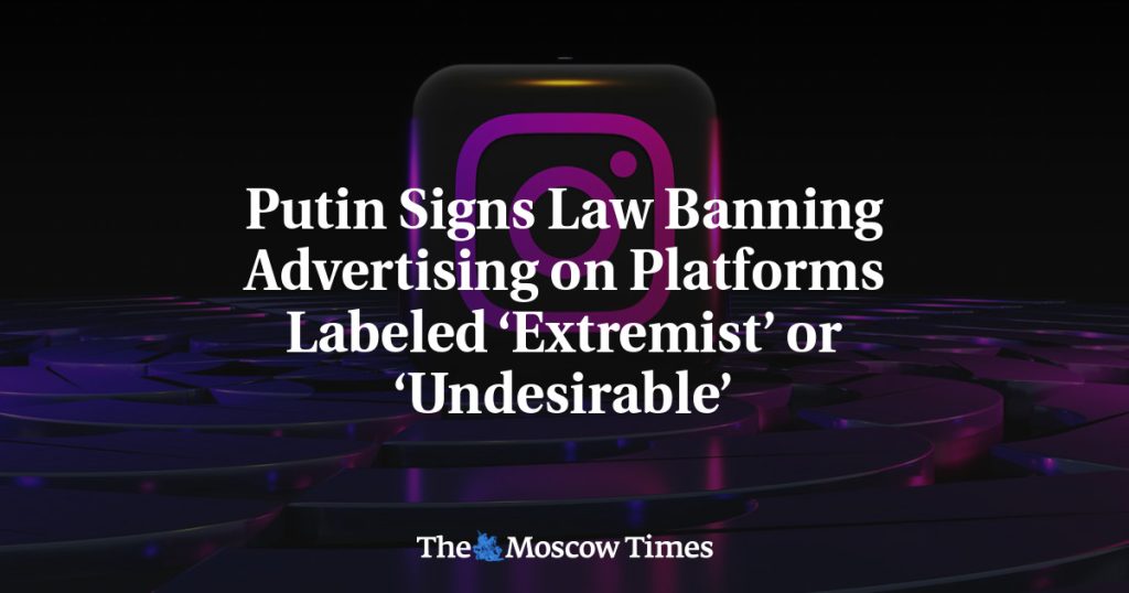 President Vladimir Putin on Monday signed a law banning advertising through organizations designated as “undesirable” or “extremist,” a move that will likely steer businesses away from promoting their products and services on platforms like Facebook and Instagram.