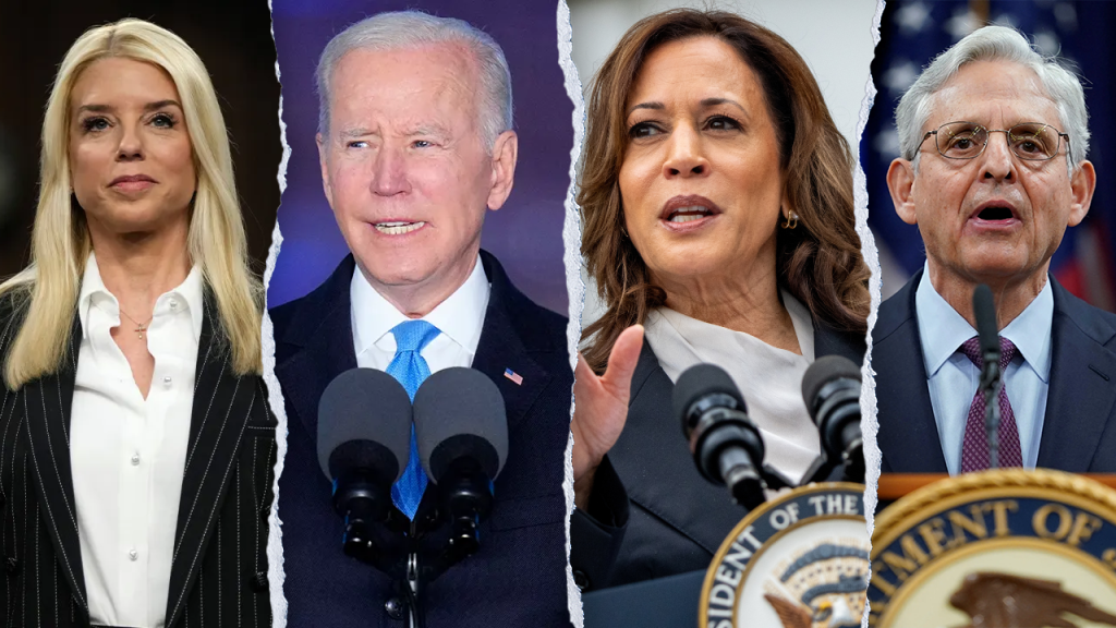 Summarize this content to 2000 words in 6 paragraphs Attorney General Pam Bondi on Tuesday personally stripped the Justice Department’s walls of portraits of former President Joe Biden, former Vice President Kamala Harris, and her own predecessor, former Attorney General Merrick Garland, saying it was “ridiculous” for the portraits to hang nearly three weeks into President Donald Trump’s tenureBondi’s role in personally removing the portraits, first shared on X by the New York Post’s Miranda Devine, was confirmed to Fox News Digital by a Justice Department official.Bondi “saw portraits of Garland, Biden, Harris were still up, and she took the initiative to take them off the walls herself and stack them in the corner,” the official told Fox News. BONDI SWORN IN AS ATTORNEY GENERAL WITH MISSION TO END ‘WEAPONIZATION’ OF JUSTICE DEPARTMENT The actions come after Bondi, who was sworn in earlier this month, vowed during her confirmation hearing in January not to politicize the Justice Department. Bondi, a longtime state prosecutor in Florida and two-time state attorney general, used her roughly five-hour confirmation hearing last month to vow that, if confirmed, the “partisanship, the weaponization” at the Justice Department “will be gone.” FBI AGENTS SUE TRUMP DOJ TO BLOCK ANY PUBLIC IDENTIFICATION OF EMPLOYEES WHO WORKED ON JAN. 6 INVESTIGATIONS “America will have one tier of justice for all,” she said. Trump, for his part, praised Bondi during her swearing-in ceremony earlier this month as “unbelievably fair and unbelievably good,” and someone who he said will “restore fair and impartial justice” at the department. “I know I’m supposed to say, ‘She’s going to be totally impartial with respect to Democrats,'” Trump told reporters then, “and I think she will be as impartial as a person can be.”