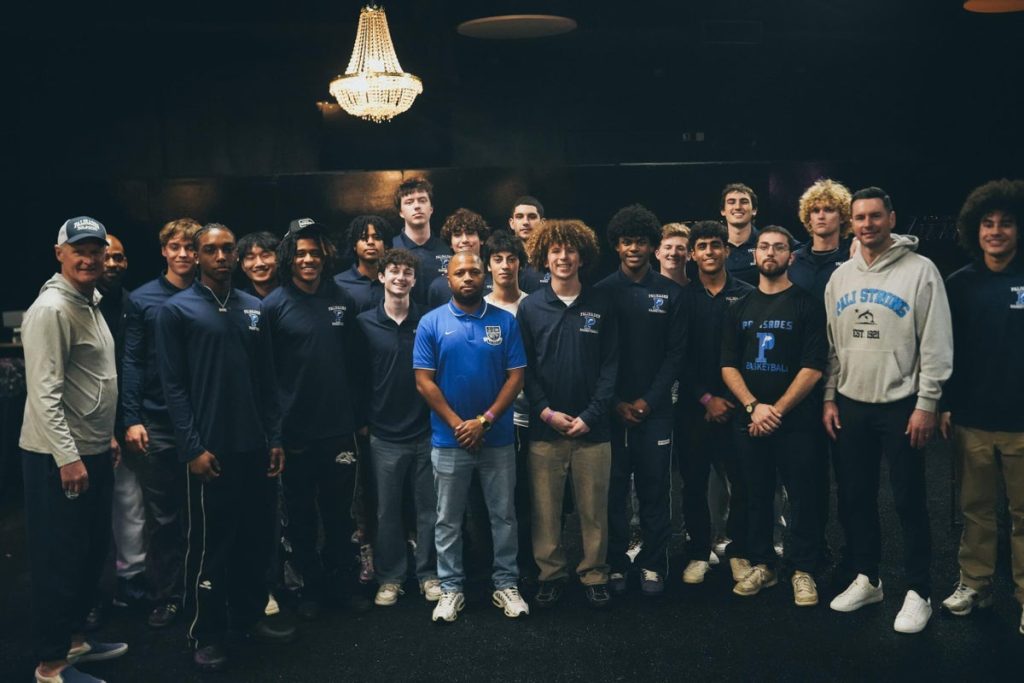 Steve Kerr and JJ Redick speak to the team after Thursday’s Warriors-Lakers game. Last month, fires disrupted their lives and their season. (Courtesy of Golden State Warriors)But their team is a testament to what was discovered in the ashes, for they found a deeper brotherhood. They found their resilience. They found the spirit of community.“I learned that they’re their family,” said coach Jeff Bryant in his first season leading Palisades. “And they are relentless. They’re brothers. And they’re going to fight the fight. There was a community once before. There will be a community again.”And on this night, they found the empathy of a pair of NBA coaches.Redick, in his first year on the Lakers bench, made the Pacific Palisades his home. He drove past the high school to work every day. The house the Redicks rented burned in the fires, forever engraving them into their new community.Kerr graduated from Palisades High in 1983. He introduced his mother, Ann, to the team. They told them how at 90 years old she lost the home where she raised her children. More than half a century of memories incinerated.“Her house is on Chautauqua (Boulevard),” said Kerr, sporting a navy and white Palisades Dolphins trucker cap. “That’s where I grew up. It’s been in the family since 1969.”But both Kerr and Redick have stiff-armed sympathy. They have resources most victims of the fire don’t. So they shared some of them with the Palisadian hoopers.If time with two popular NBA coaches wasn’t enough, the Dolphins players were each gifted Kobe Bryant signature Nikes and Warriors gear. They got some television time and media coverage. Their moment of shine had their text messages blowing up.“Everybody knows us now,” senior wing Mikal Sims said with a confident smile plastered across his face. He’s 6-foot-2 with square shoulders and immaculate cornrows. The camera loves him.“We were the big people on campus. Then, the campus burned down. Now we’re just the big people wherever we are.”