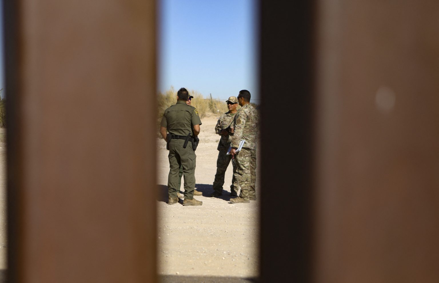 Border Patrol agents in the El Paso area in the desert of Sunland Park, New Mexico, as seen from Ciudad Juárez, Mexico, through a gap in the border wall on October 23. Agents in California have been placed on high alert following warnings of a potential revenge shooting.