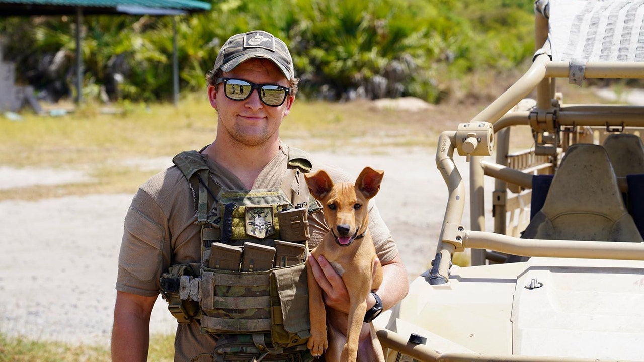 rewrite this title US Marine protected puppy while deployed, now hopes to bring her home